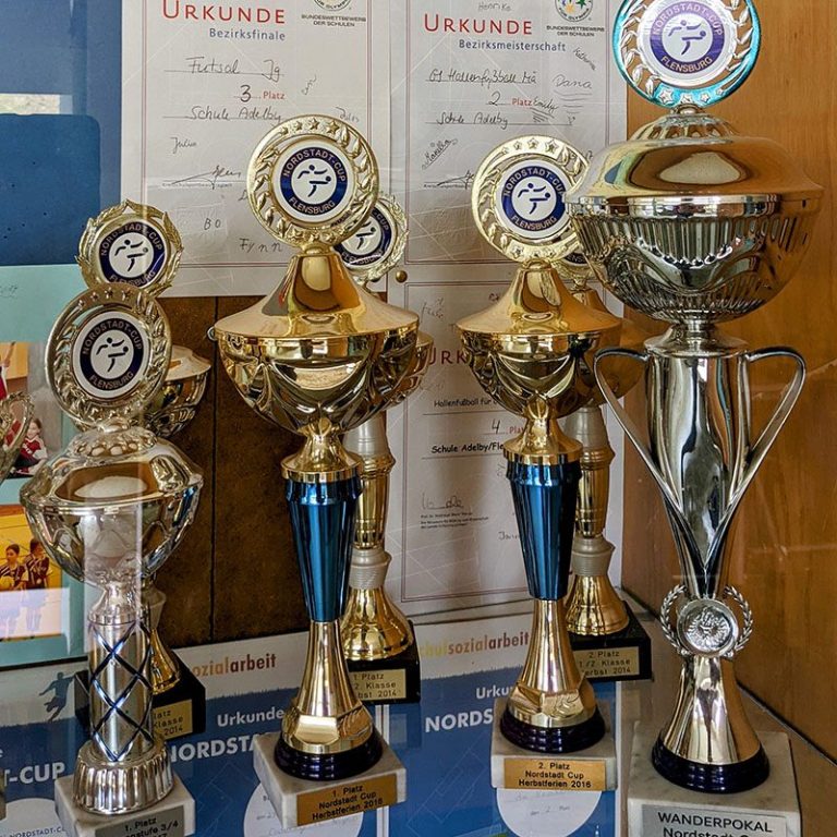 Die Schule Adelby nimmt regelmäßig an Handball- und Fußball-Tunieren teil. Trikots & die Fahrtkosten: Gehen auf uns!